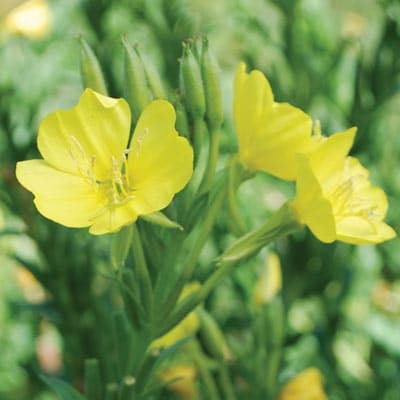 11) Oenothera biennis (Evening Primrose), is great for eczema, dermatitis and skin allergies. It can also reduce inflammations, ease bloating of menstrual discomfort, and strengthen liver functions. One of the most interesting uses of evening primrose is to help alleviate symptoms of multiple sclerosis and other nerve disorders. It is one of the few herbs that can help with nerve problems.